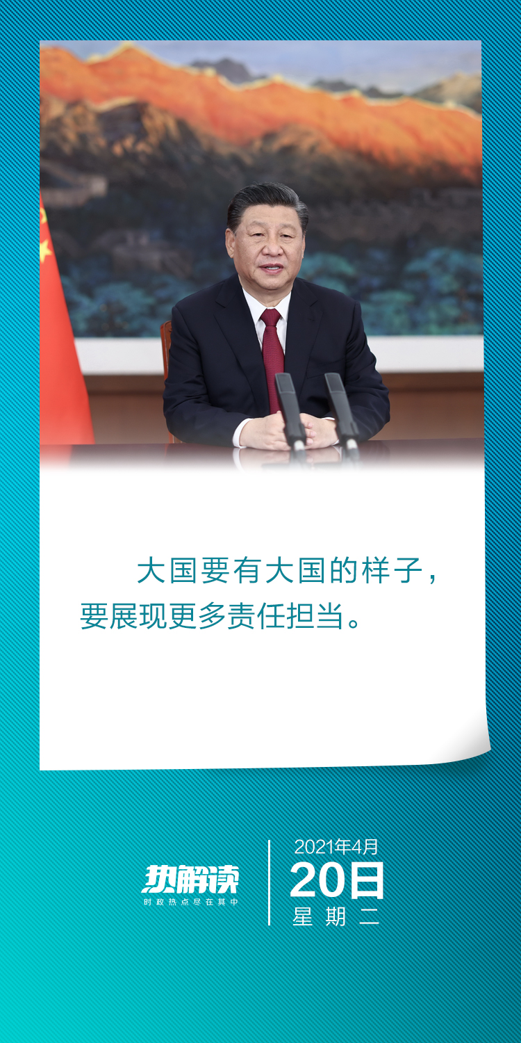 中國是一個有責(zé)任感、有擔(dān)當(dāng)?shù)拇髧?。?xí)近平主席此次主旨演講再次明確宣示了中國主張。